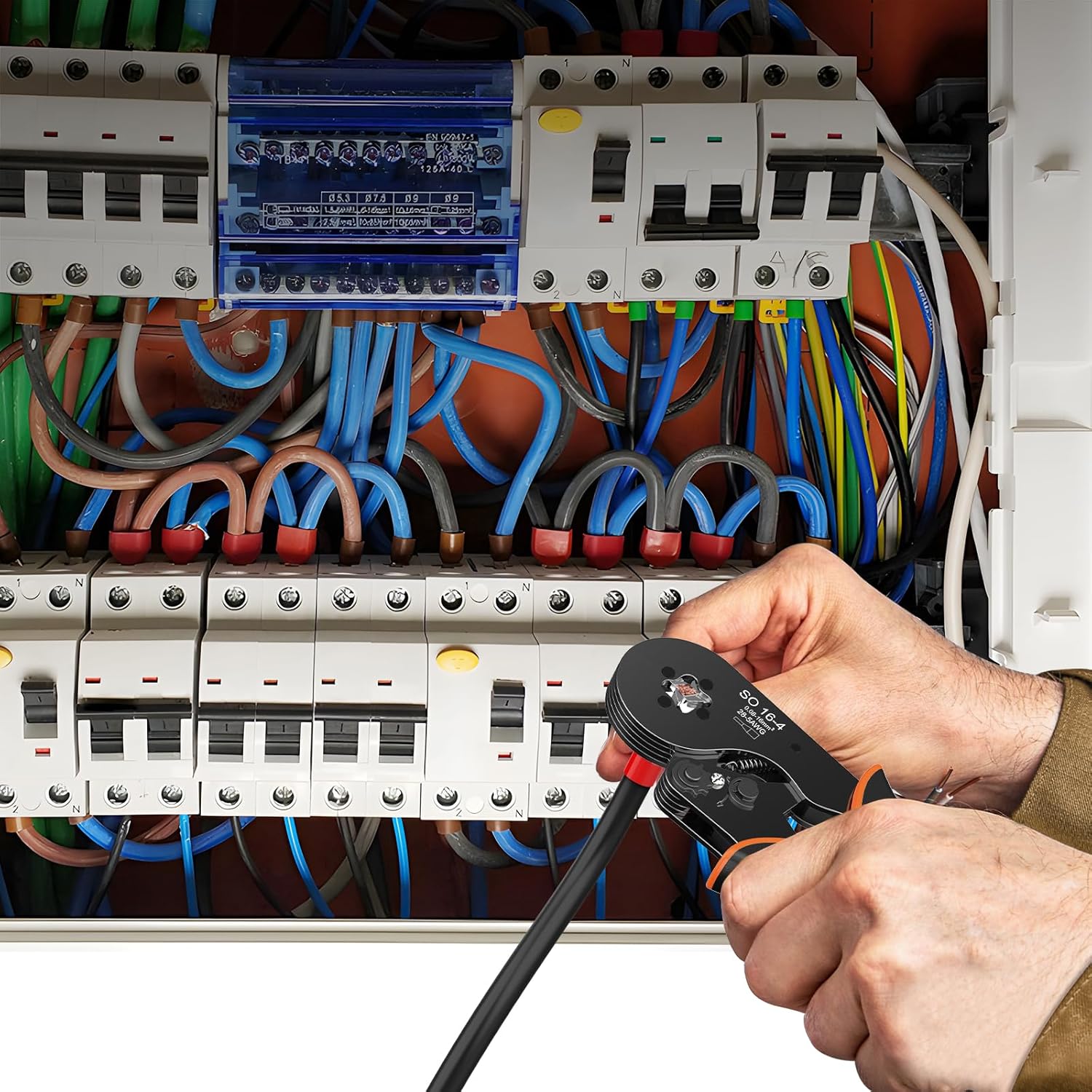 Zana ya kubana HSC8 10-6A iliyojumuishwa imeundwa ili kutoa shinikizo sawa na sahihi kwenye vituo, kichwa chake kinachozunguka na utaratibu wa ratchet huhakikisha ugumu mzuri kila wakati.