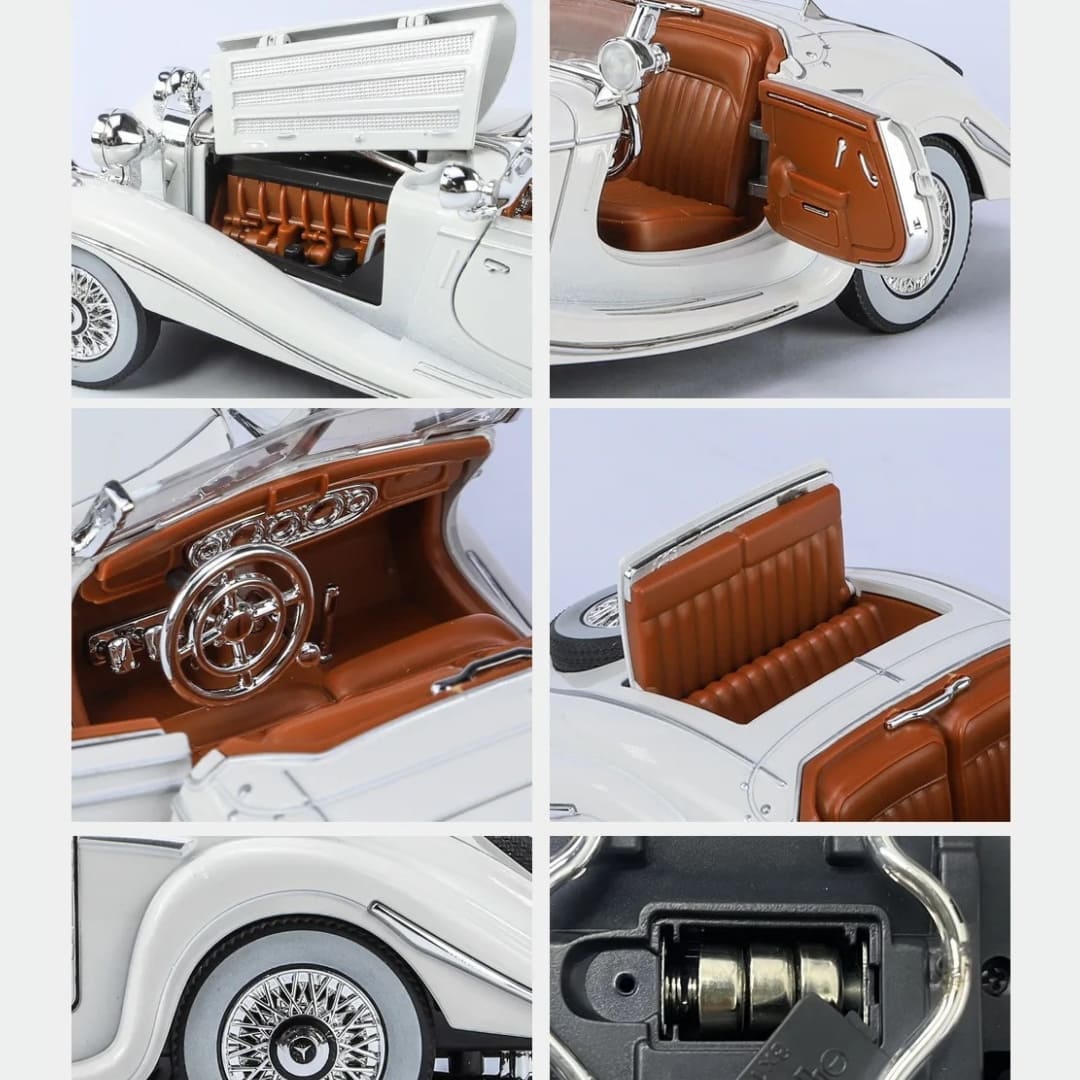 🚀🔥 Gundua upya anasa na uboreshaji wa enzi ya dhahabu ya gari kwa uundaji huu mzuri wa 1:24 wa Mercedes-Benz 500K maarufu.